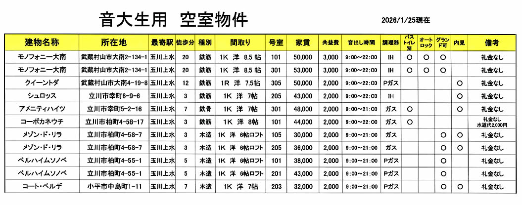 > 空室物件リスト2026/1/25